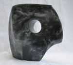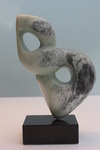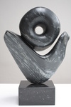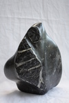 2010In Chinees zwart/wit dooraderd speksteen uitgevoerde abstracte vorm van een vlam op hardstenen sokkel. Prijs inclusief btw en commissie bij aankoop galerie. Aankoop buiten exposities mogelijk bij de kunstenaar.